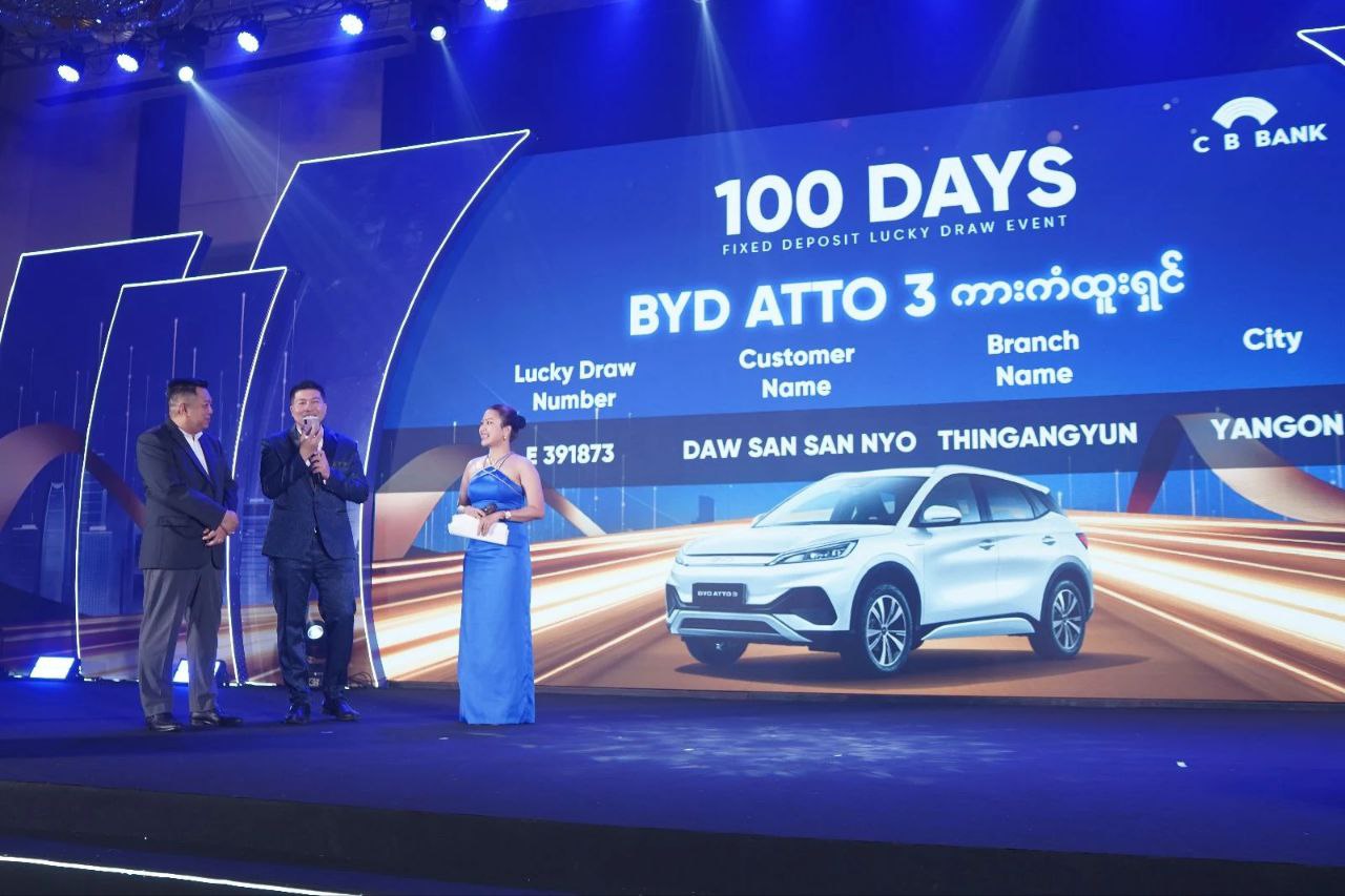 မြန်မာနိုင်ငံ၏ ထိပ်တန်းဘဏ်တစ်ခုဖြစ်သည့် CB Bank က စီစဉ်ကျင်းပသည့် “သင်၏ EV ကား အိပ်မက်ဆီသို့” ကံထူးရှင်ရွေးချယ်ပွဲနှင့် ဂုဏ်ပြုနေ့လယ်စာစားပွဲ အခမ်းအနားကို ၂၀၂၅ ခုနှစ်၊ ဇူလိုင်လ၊ ၁၄ ရက် (တနင်္လာနေ့)၊ နံနက် (၁၀:၀၀) နာရီမှ နေ့လယ် (၁:၀၀) နာရီအထိ ရန်ကုန်မြို့၊ ဆီဒိုးနားဟိုတယ်၌ အောင်မြင်စွာ ကျင်းပပြုလုပ်ခဲ့ပါသည်။