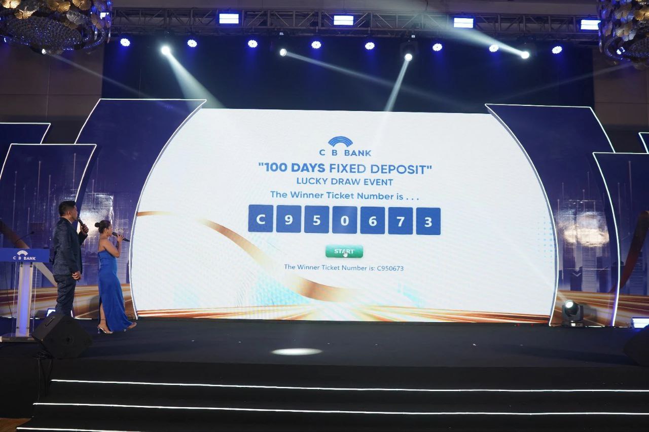 ဤပွဲသည် CB Bank ၏ “100 Days Fixed Deposit” အထူးအစီအစဉ်ကို ယုံကြည်စိတ်ချစွာ ရင်းနှီးမြှုပ်နှံခဲ့ကြသည့် Customer များကို ကျေးဇူးတုံ့ပြန်သည့်အနေဖြင့် ကျင်းပပြုလုပ်ခြင်းဖြစ်သည်။ ဤအခမ်းအနားတွင် CB Bank ၏ အမှုဆောင်အရာရှိ ဖြစ်သူ ဦးကျော်သူကိုမှ အဖွင့်နှုတ်ခွန်းဆက်စကား ပြောကြားခဲ့ပြီး ကံထူးရှင်ရွေးချယ်မည့်စနစ်၏ ပွင့်လင်းမြင်သာမှုကို ရှင်းလင်းပြောကြားခဲ့သည်။