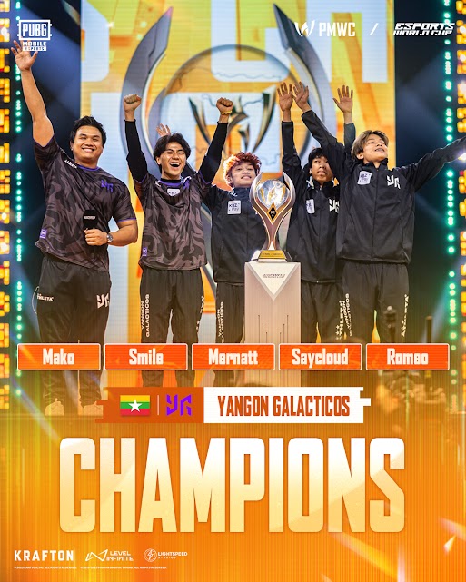 PUBG MOBILE World Cup (PMWC) ပြိုင်ပွဲကို eSports World Cup (EWC) 2025 ၏ တစ်စိတ်တစ်ပိုင်းအဖြစ် ဆော်ဒီအာရေဗျနိုင်ငံ ရီယက်ဒ်မြို့တွင် ကျင်းပပြုလုပ်ခဲ့ပြီး ကမ္ဘာအနှံ့မှ ထိပ်တန်း PUBG MOBILE အသင်းများကို စုစည်းစေခဲ့သည်။ မြန်မာနိုင်ငံ ကိုယ်စားပြုအဖြစ် Yangon Galacticos သည် ဒေသတွင်းပြိုင်ပွဲနှင့် SEA Challengers League တို့ကို အောင်မြင်ခဲ့ပြီး Underdog အသင်းအဖြစ် ပြိုင်ပွဲတွင် ဝင်ရောက်ယှဉ်ပြိုင်ခဲ့သည်။ Grand Finals ပွဲစဉ်သို့ တက်ရောက်လာသည့် အသင်းအနေဖြင့် Yangon Galacticos သည် စုစုပေါင်းအမှတ် ၁၅၇ မှတ်ဖြင့် Weibo Gaming ကဲ့သို့ နာမည်ကြီးအသင်းများကို အံ့အားသင့်ဖွယ် ဖြတ်ကျော်အနိုင်ရယူကာ ပထမနေရာတွင် ရပ်တည်ခဲ့သည်။