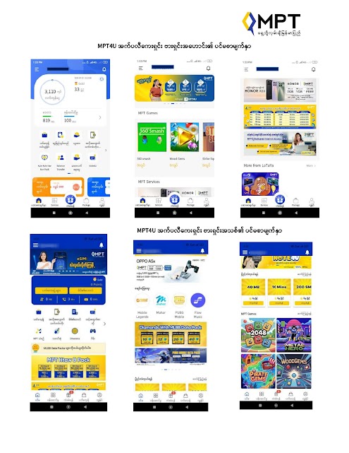 MPT က ၎င်း၏ သုံးစွဲသူများအနေဖြင့် ဝန်ဆောင်မှုများကို အဆင်ပြေပြေနှင့် ထိရောက်စွာ ပေးစွမ်းနိုင်ရေးဟူသည့် ကတိကဝတ်၏ တစ်စိတ်တစ်ပိုင်း အဖြစ် MPT ၏ ဝန်ဆောင်မှုများကို တစ်နေရာတည်းတွင် စုံလင်စွာရရှိနိုင်စေရန် ဆောင်ရွက်ထားသည့် MPT4U အက်ပလီကေးရှင်းကို အသုံးပြုနိုင်ကြရန်အတွက် တိုက်တွန်းလိုက်ရပါသည်။