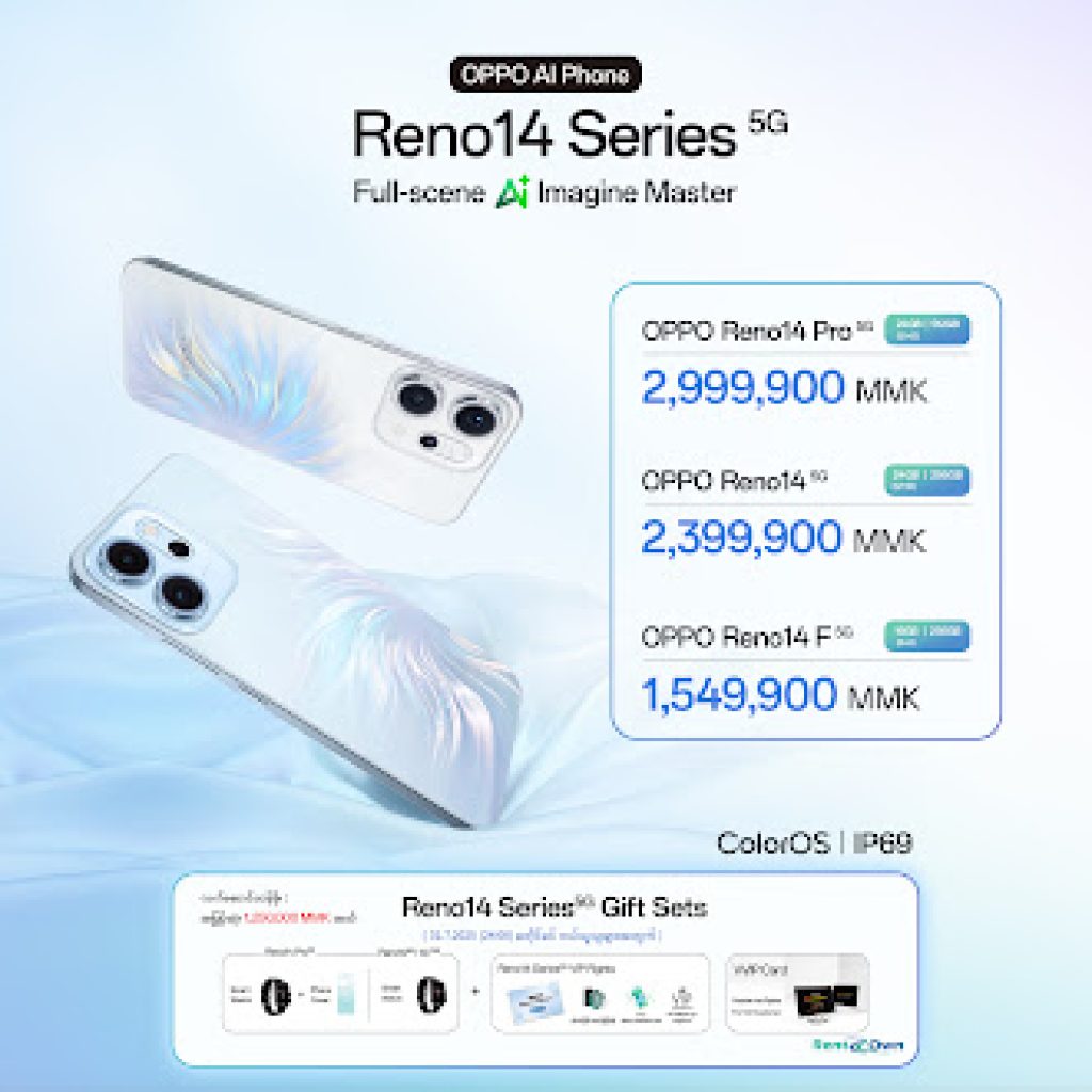 ဒီတစ်ခေါက် OPPO Reno14 Series 5G မှာဆိုရင် ထုတ်ကုန်မော်ဒယ်အားလုံးကို 5G Technology နည်းပညာနဲ့ ဖန်တီးထားတာဖြစ်သလို ထိပ်ဆုံးထုတ်ကုန်ဖြစ်တဲ့ OPPO Reno14 Pro 5G ကိုပါ မြန်မာနိုင်ငံဈေးကွက်အတွင်း စတင်မိတ်ဆက်လာပြီဖြစ်ပြီး OPPO Reno14 Series 5G မှာဆိုရင် Flagship အဆင့် စွမ်းဆောင်ရည် မြင့်မားအောင်ဖန်တီးထားကာ MediaTek Dimensity 8450 platform, 50MP သုံးလုံးပါရှိတဲ့ နောက်ကင်မရာစနစ်၊ 1.5K 120Hz OLED မျက်နှာပြင်နဲ့ လွန်စွာပါးလွှာလွန်းလှတဲ့ bezels များ၊ အားများလှတဲ့ 6,200mAh ဘက်ထရီ နဲ့အတူ အားသွင်းမြန်ဆန်လှတဲ့ ကြိုးရှိ ၊ ကြိုးမဲ့ အားသွင်းစနစ်တွေပါ ပါရှိလာဦးမှာဖြစ်ပါတယ်။