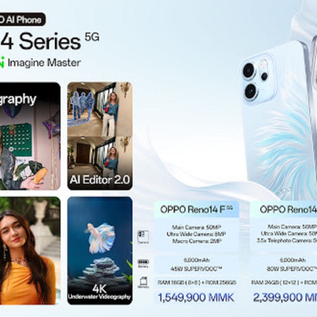 ကမ္ဘာ့ထိပ်တန်း စမတ်ဖုန်းကုမ္ပဏီ တစ်ခုဖြစ်တဲ့ OPPO က အခုအခါမှာ သုံးစွဲသူတွေအတွက် ပိုပြီး သက်သာပေါ့ပါးစေနိုင်မှာဖြစ်သလို ခေတ်မီတိုးတက်ပြီး နောက်ဆုံးပေါ် AI လုပ်ဆောင်ချက်တွေ ပါရှိလာမဲ့ OPPO Reno14 Series 5G ကို မြန်မာနိုင်ငံဈေးကွက်သို့ စတင်မိတ်ဆက်လိုက်ပြီပဲဖြစ်ပါတယ်။