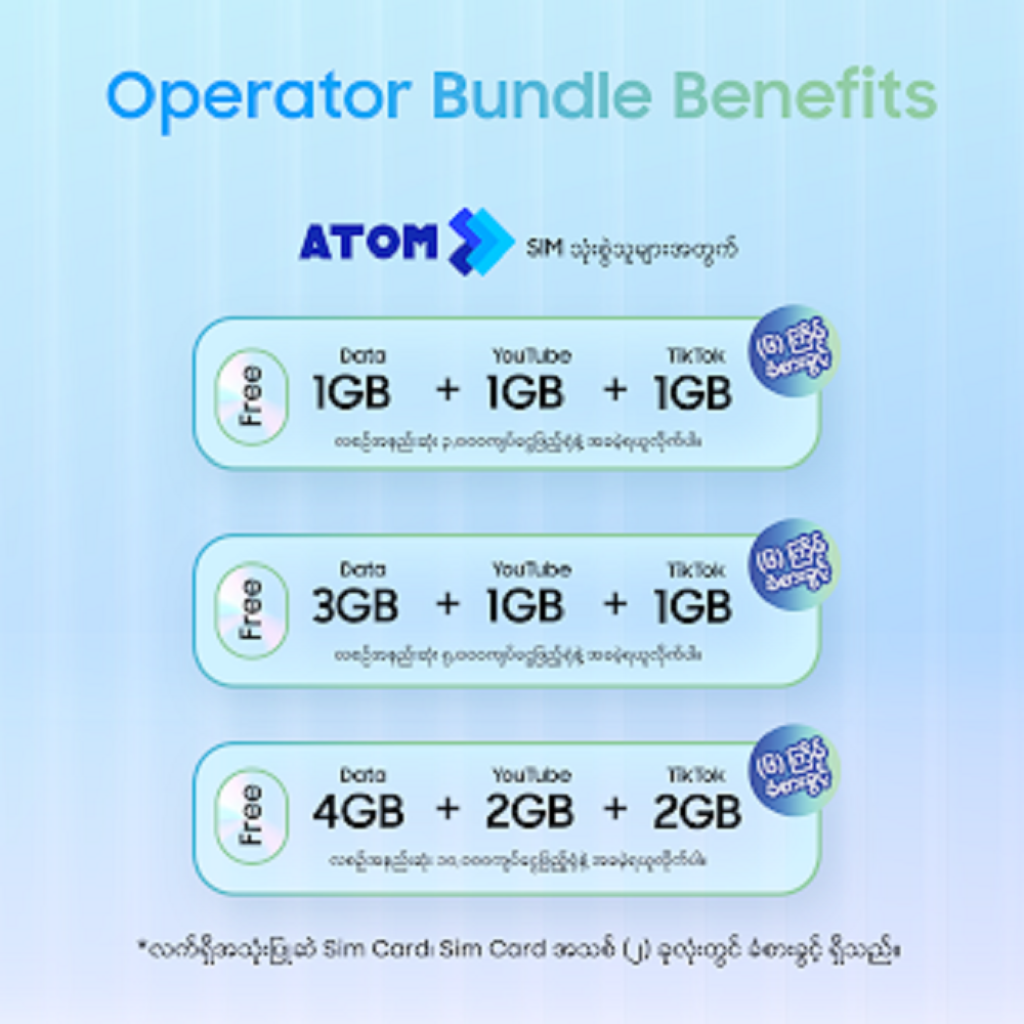 • ATOM SIM Card အသုံးပြုသူတွေအတွက် Operator Bundle Benefits များ