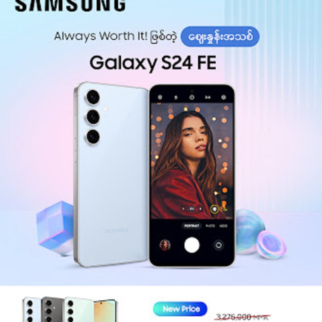 စွမ်းဆောင်ရည်အမြင့်မားဆုံးနဲ့ လူကြိုက်အများဆုံး Samsung Galaxy S24 FE စမတ်ဖုန်းကို ပိုမို သက်သာတဲ့ဈေးနှုန်း အသစ်တွေနဲ့ ဝယ်ယူရရှိနိုင်ပြီ ဖြစ်ကြောင်း Samsung Myanmar က ယနေ့ ကြေညာလိုက်ပါတယ်။  လူကြိုက်အများဆုံး Galaxy AI လုပ်ဆောင်ချက်တွေပါဝင်တဲ့ Fan Edition စမတ်ဖုန်း Galaxy S24 FE ကို ပရီမီယံ ဒီဇိုင်း၊ မြင့်မားတဲ့ စွမ်းဆောင်ရည်၊ သင့်တင့်မျှတမှုအရှိဆုံးဈေးနှုန်းတွေနဲ့ ဖန်တီးထုတ်လုပ်ထားတာ ဖြစ်ပါတယ်။