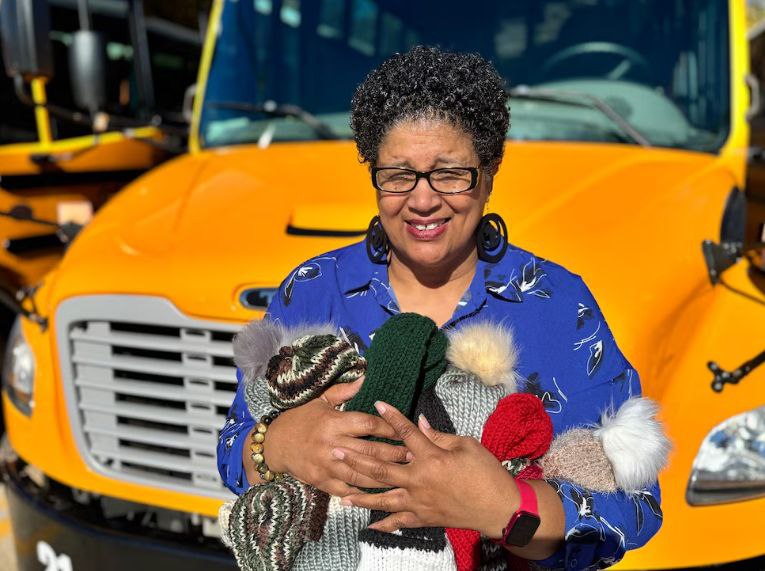 Ref: School bus driver knits hats for students to stay warm during winter months
