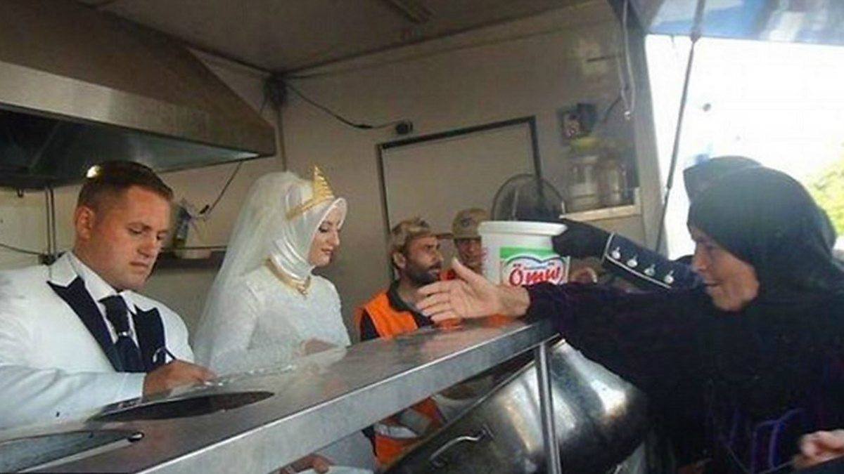 သတို့သမီးက အသက် ၂၀ ၊ သတို့သားက ၂၄ နှစ်ပါ။ သူတို့က ချို့တဲ့နွမ်းပါးပြီး စားဖို့သောက်ဖို့ အနိုင်နိုင်ဖြစ်နေရှာတဲ့ ဆီးရီးယားဒုက္ခသည် ၄၀၀၀ အတွက် အစားအစာတွေ ဝေမျှပေးနေတာပါ။ မင်္ဂလာပွဲမှာ ဧည့်သည်တွေကို ကျွေးမွေးဧည့်ခံမယ့်အစား အမှန်တကယ် လိုအပ်နေသူတွေကို အစားအစာ ကျွေးမွေးမယ့်စိတ်ကူးကို သတို့သားရဲ့ဖခင် အလီက စတွေးခဲ့တာပါ။