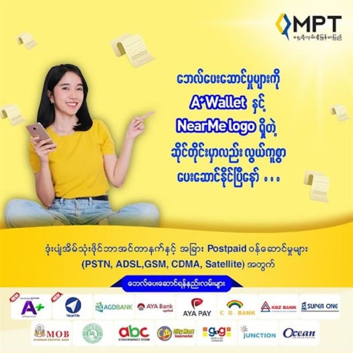 • လက်ရှိ ငွေပေးချေမှုနည်းလမ်းများ : https://mpt.com.mm/en/payment-channels/