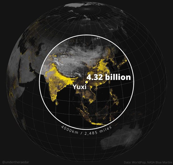 ကမ္ဘာပေါ်မှာ လူဦးရေ ၈.၂ ဘီလျံရှိတဲ့အနက် တစ်ဝက်ကျော်ကတော့ အချင်းဝက် မိုင် ၂၅၀၀ ပဲရှိတဲ့ ယူရှီစက်ဝန်းထဲမှာ နေထိုင်ကြတာပါ။ တရုတ်နိုင်ငံ ယူနန်ပြည်နယ်၊ ယူရှီမြို့ကို ဗဟိုပြုထားတာကြောင့် ယူရှီစက်ဝန်းလို့ ခေါ်ဆိုတာဖြစ်ပြီး တရုတ်၊ အိန္ဒိယ၊ အင်ဒိုနီးရှား၊ ဘင်္ဂလားဒေ့ရှ်၊ ဂျပန်၊ မြန်မာ အပါအဝင် နိုင်ငံပေါင်း ၂၀ ကျော် ပါဝင်ပါတယ်။